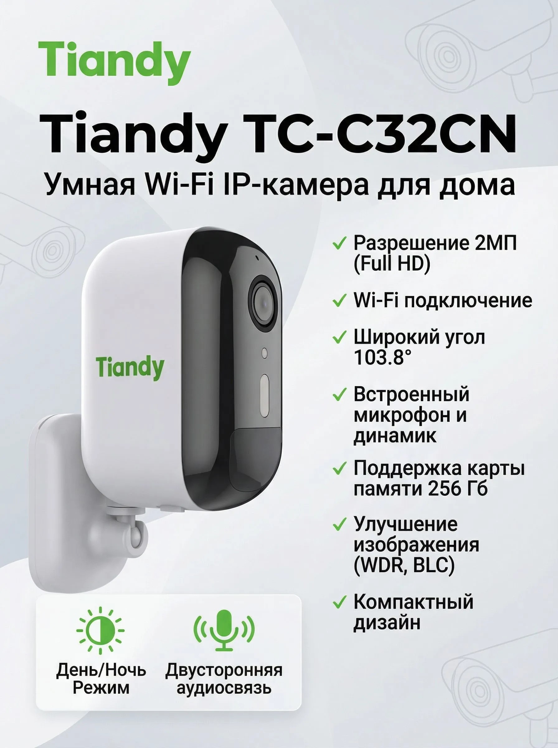 Главная ОС РЕАЛ Видеонаблюдение IP-оборудование Wi-Fi Видеокамеры для дома TC-C32CN Spec:I3W/U/WIFI/2.8mm/V4.0